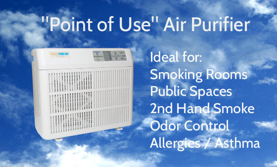 For "Point of Use" Applications: The Catalytic PURE AIR purifier is ideal for smoking rooms and public areas where you get 2nd hand smoke and odor complaints. This self contained unit can go anywhere near a 110 volt outlet and improve the air with powerful PCO technology.